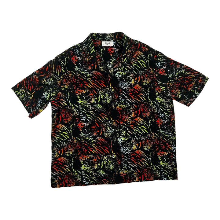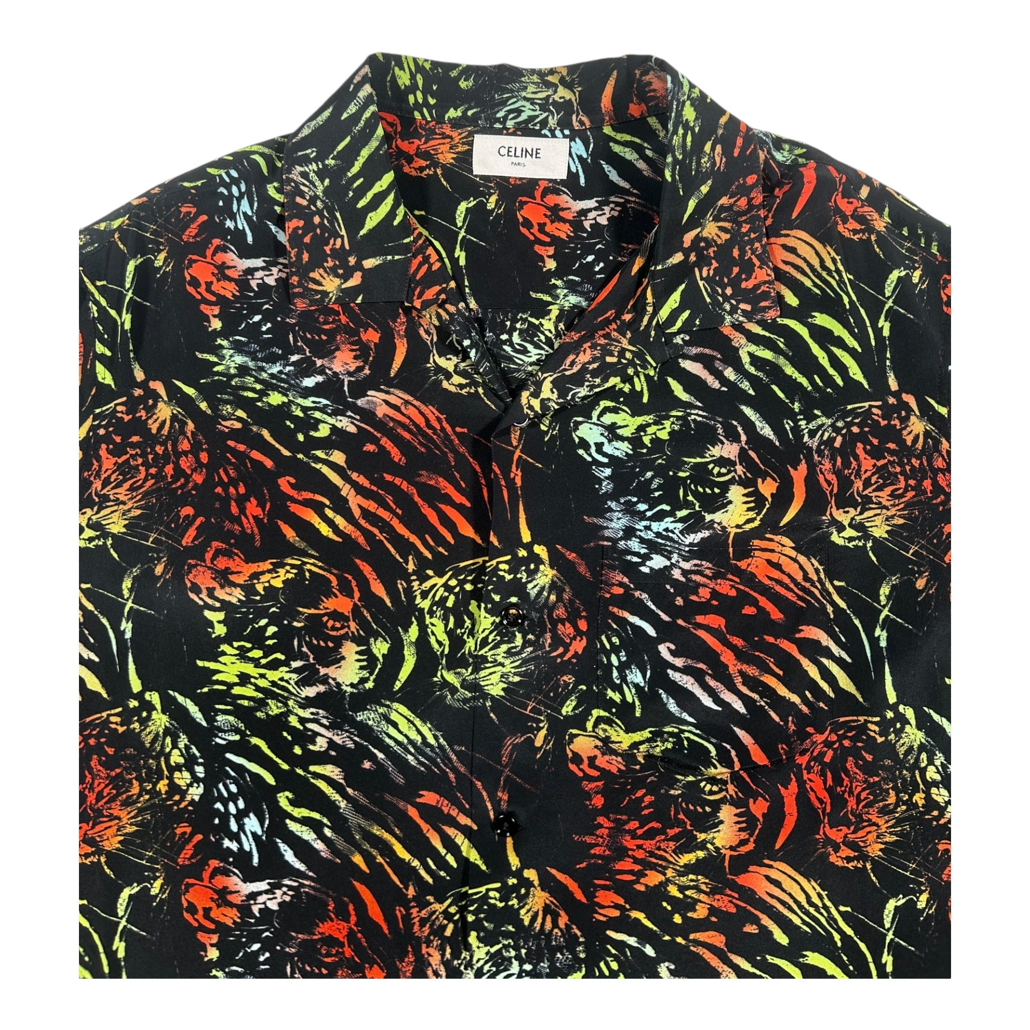 Celine Black Hawaiian Shirt Neon Tiger Print