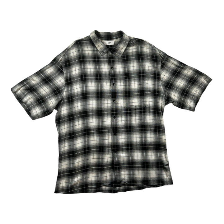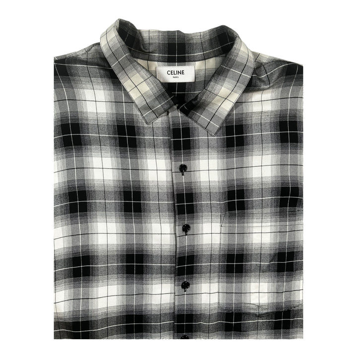 Celine Rayon Cotton Check Casual Shirt Black x White