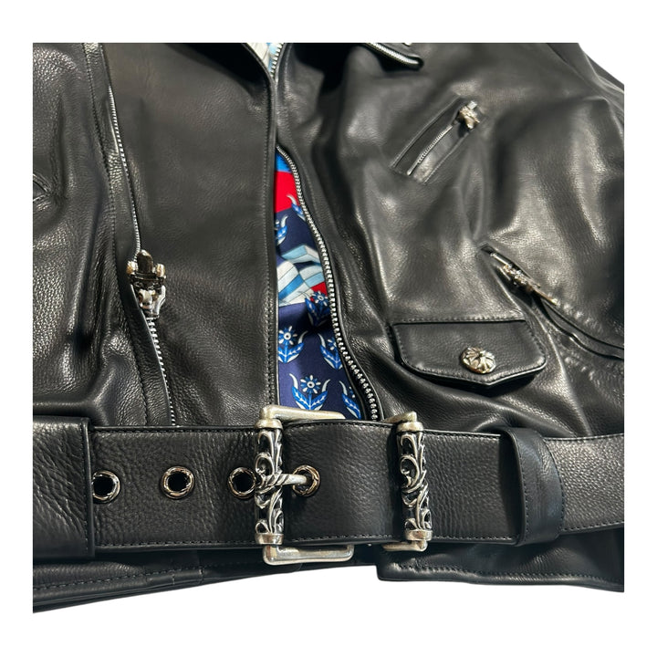Chrome Hearts Black Leather JJ Dean Hermes lining blue silk